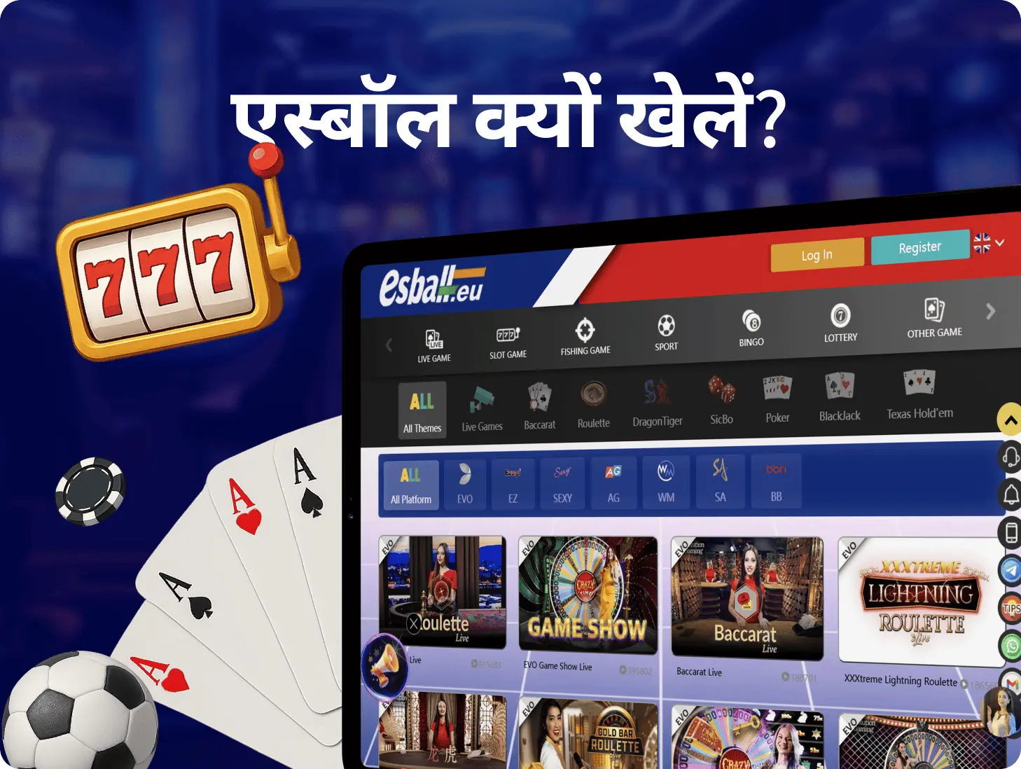 क्या आप भारत में सर्वश्रेष्ठ ऑनलाइन गेमिंग गंतव्य की तलाश में हैं? Esball भारत के उपयोगकर्ताओं के लिए बनाया गया एक विश्वसनीय और सुरक्षित प्लेटफ़ॉर्म है, जो असली पैसे वाले कैसीनो गेम्स का एक विस्तृत संग्रह प्रदान करता है। रोमांचक क्रैश गेम्स, उच्च-गुणवत्ता वाले स्लॉट्स और बैकारेट, रूलेट और इंटरैक्टिव गेम शो सहित लाइव डीलर अनुभवों का आनंद लें। तेज़ निकासी, सुरक्षित जमा विधियों और रोमांचक पुरस्कारों के साथ, Esball एक बेजोड़ मनोरंजन अनुभव की गारंटी देता है।